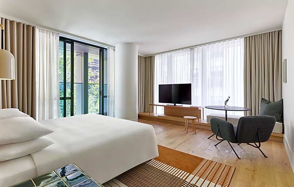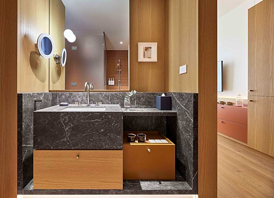 The spacious suite features air conditioning, soundproof walls, a tea and coffee maker, a seating area and a flat-screen TV with cable channels.